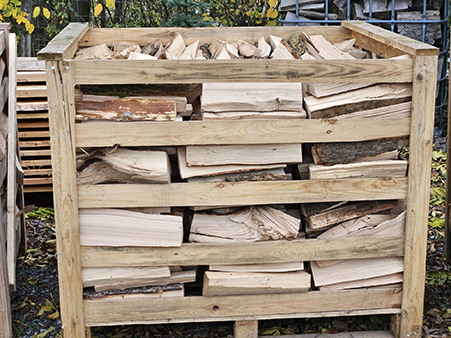 Gespaltenes Holz in den Längen 0,25 oder 0,33 m, lose als Schüttware,